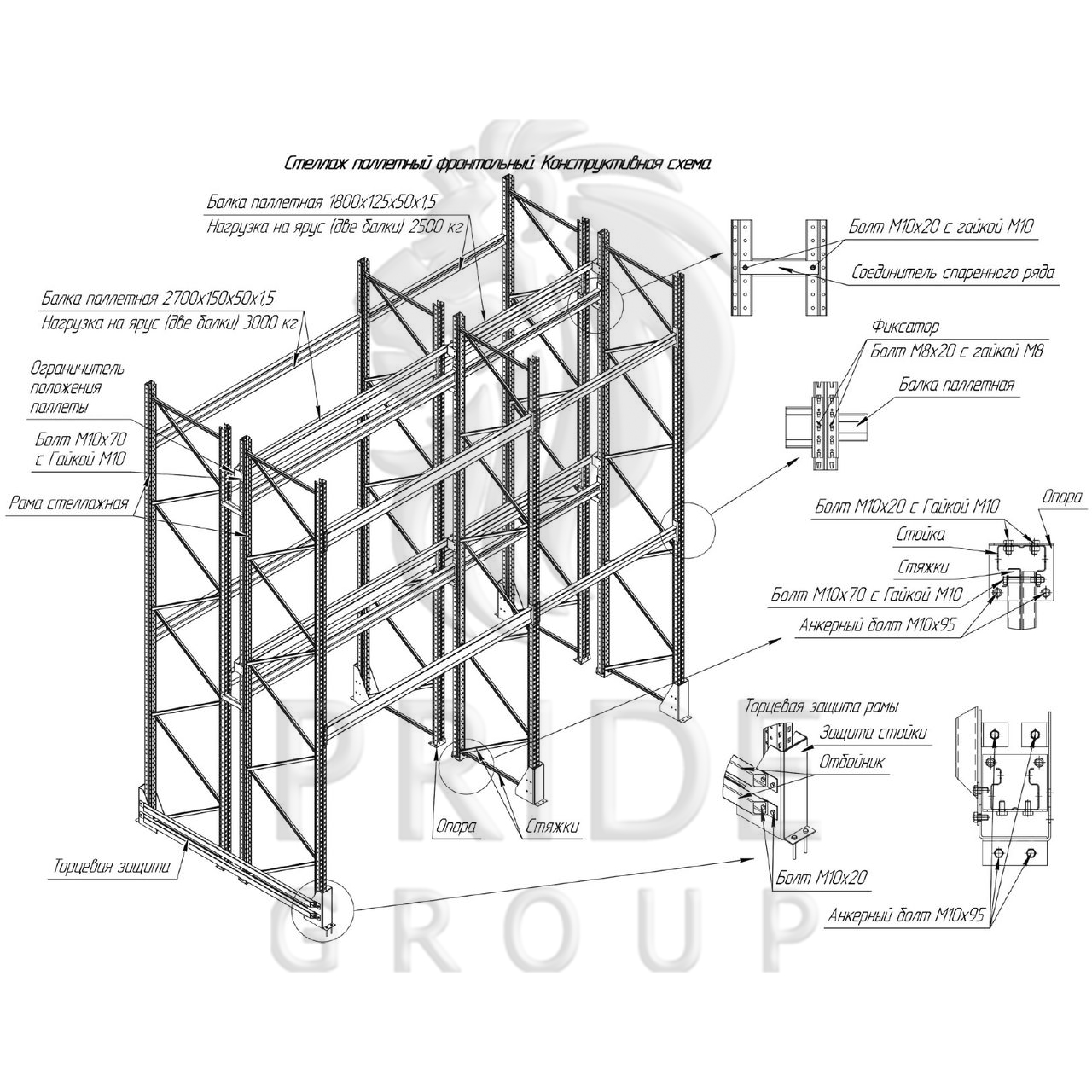 Паллетный стеллаж К75 1800*1050*8000 с нагрузкой до 1800 кг на 1 ярус. Металлическая конструкция, предназначена для складирования и хранения грузов на Евро (1200*800) или Фин (1000*1200) поддонах, и настиле: профлист, фанера, сетка. Сборно-разборная металлическая конструкция позволяет эффективно пользоваться пространством и обеспечить доступ к товарам. Фронтальные стеллажи собираются в одну или две параллельные линии необходимые заказчику любой длины и высотой до 15 метров. Количество и высота ярусов устанавливаются по требованию заказчика. Стеллажи легко собираются и разбираются, легко монтируются, расширяются и сокращаются за счет возможности изготовления по размерам склада любой сложности. Изделия надежны и долговечны, подходят почти для любой категории товара. Мы поможем подобрать стеллажные системы по размерам и нарисовать схему склада под ваши потребности без переплаты в короткие сроки.